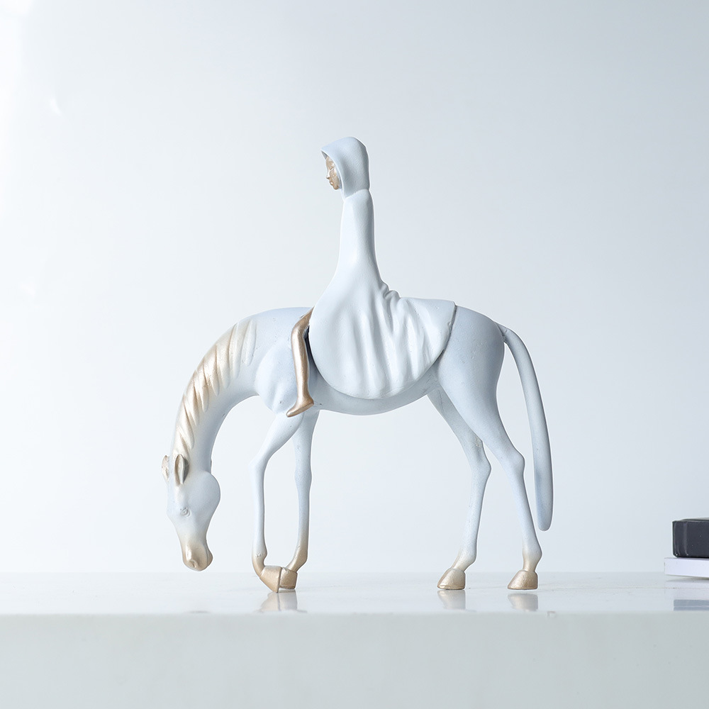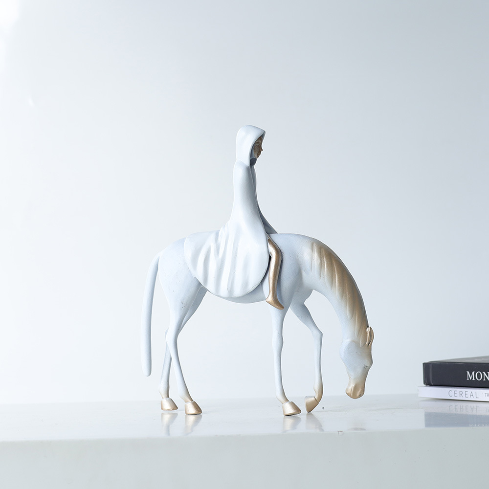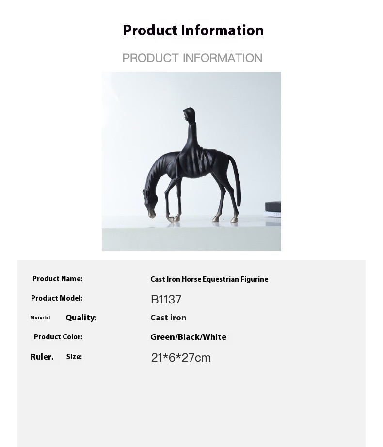 This elegant cast iron statue captures the timeless strength of a horse and rider, crafted in a refined New Chinese style. Available in white, green, or black finishes, it blends tradition with modern simplicity, making it a striking piece for home or office.